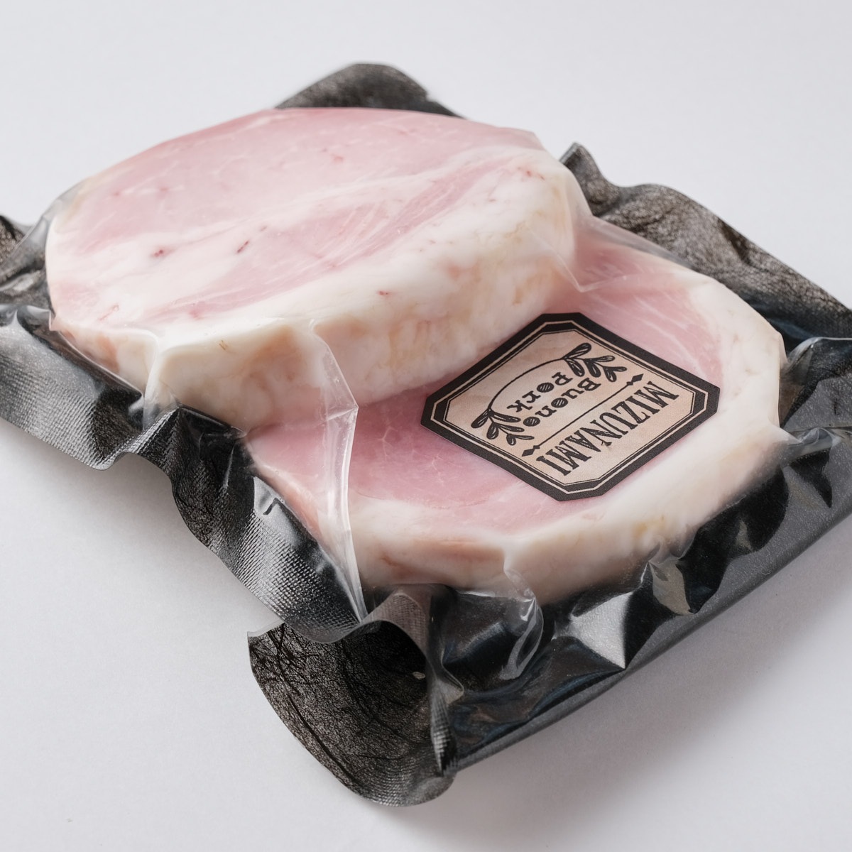 「瑞浪ボーノポーク」霜降り割合を増加させる種豚「ボーノブラウン」を交配、生産した肉豚に専用飼料を与え、生産された豚肉です。「霜降り割合評価スコア」による評価値「2」以上の枝肉のみが「瑞浪ボーノポーク」として認証され、一般の豚肉に比べ、霜降り割合が約2倍(6.1%)となります。